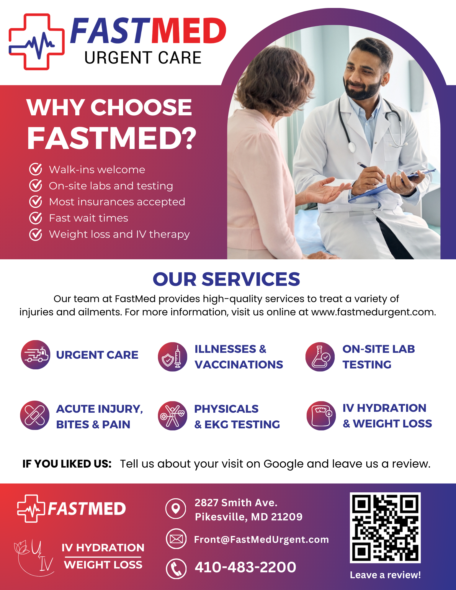 Created various print-ready materials and graphic design elements for FastMed Urgent Care and Glee Med Spa. Includes trifold brochures, EDDM, flyers, web design layout, and ready-for-web assets.